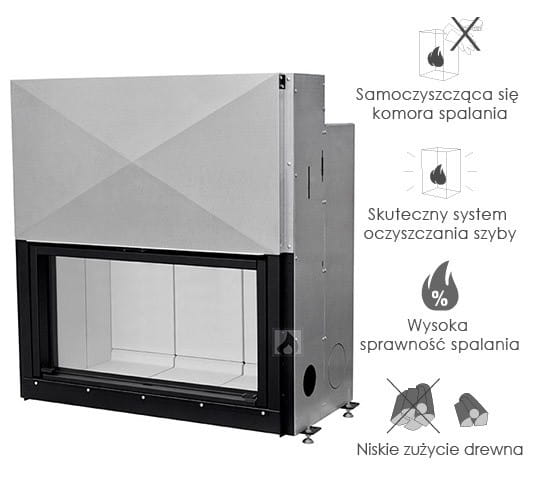 komora spalania wyłożona materiałem Alutec® - dzięki formule z dużą zawartością aluminium, w temperaturze 300°C rozpoczyna reakcję chemiczną oczyszczającą komorę paleniska. Komora paleniska wyłożona tym materiałem odbija znacznie więcej energii cieplnej do pomieszczenia. Jasny kolor materiału Alutec® sprawia, że barwa płomienia jest znacznie jaśniejsza i cieplejsza, zwiększa to walory estetyczne paleniska,