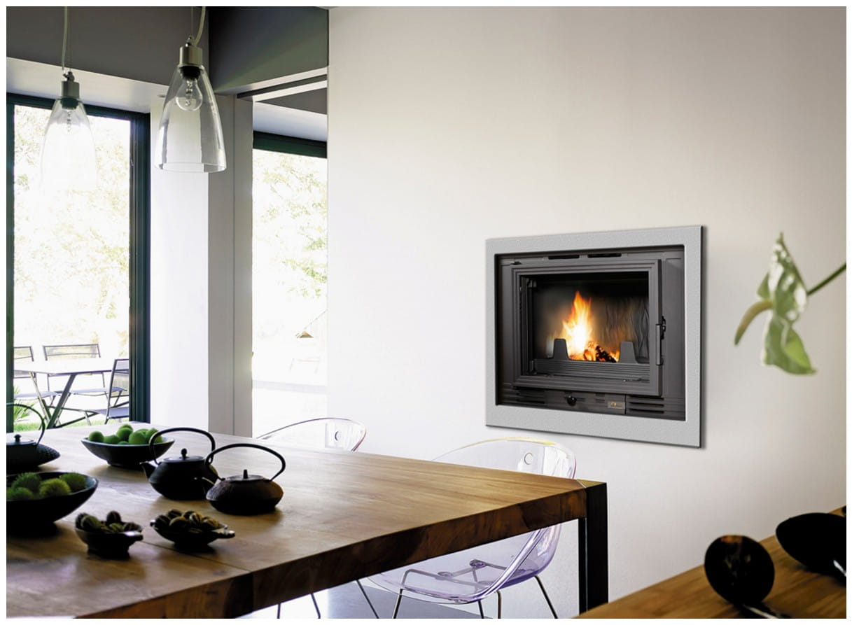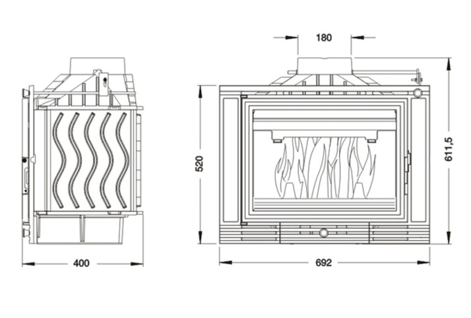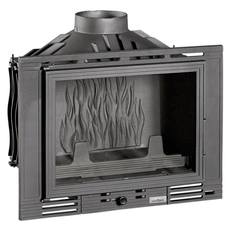 Wkład Kominkowy UNIFLAM 700 ref. 601-675 doda w kazdym salonie niesamowity efek wystroju, a dzięki dużej przejżystej prostej szybie z eleganckim wzornictwem pozwoli na delektowanie się efektownymi płomieniami w kominku. Dzięki zamontowanemu szybrowi możliwe jest sterowanie siłą ciągu kominowego oraz pozwala kontrolować tempo spalania polan. We wkładzie zastosowano system czystej szyby poprzez nawiew powietrza na szybę oraz regulację dopływu powietrza umiejscowioną w dolnej części wkadu. Wkład wyposażony został w deflektor, ogranicznik drewna, popielnik, żeliwny ruszt. Należy palić drewnem liściastym o niskim procencie wilgotności o długości do 50 cm.