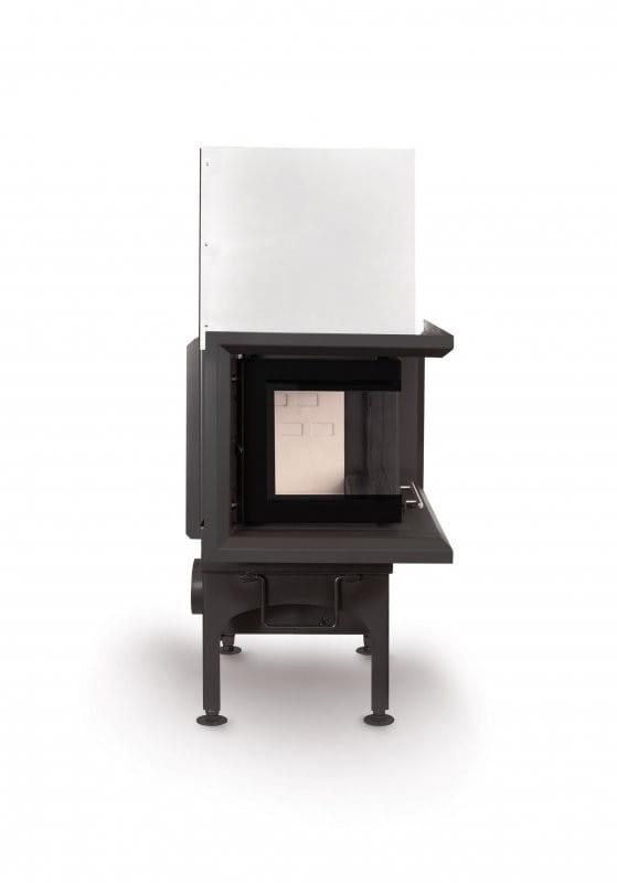 Wkład Kominkowy czeskiej firmy Flamen ALFA 50V L. Wkład o niezwykłym nowoczesnym wyglądzie wykonany z najwyższej jakości stali charakteryzuje się małymi wymiarami niezbędnymi do zabudowy, przy czym palenisko jest odpowiednio duże i chroni skutecznie przed wypadnięciem palącego się kawałka drewna lub tzw. zadymiania szyby na skutek palących się szczapek. Ze względu na swoje wymiary wkład idealnie sprawdzi się w domach niskoenergetycznych, gdzie wymagana jest niska moc kominka. Wkład kominkowy ALFA może być wyposażony w wymiennik ciepła, który umożliwia rozprowadzanie ciepła również do innych pomieszczeń. Zastosowana najlepsza technologia spalania we wkładach pozwala uzyskać idealny obraz płomienia i stworzyć błogie ciepło, a dzięki jednemu elementowi sterowania obsługa wkładu jest banalnie prosta i wygodna. Przejrzysta narożna lewa szyba z czarnym nadrukiem odporna jest na bardzo wysokie temperatury i pozwoli na delektowanie się płomieniami ognia w w kominku, dodatkowo wyposażona w system czystej szyby (system FLAMclean). Bezramowe drzwiczki otwierane są do góry – cichy mechanizm wysuwny z linkami – oraz na boki w celu łatwego czyszczenia i obsługi paleniska kominka wyposażone są w ergonomiczny nierdzewny uchwyt. Wkład osiąga sprawność 81%, dzięki temu osiągamy odpowiednią temperaturę zużywając mniej drewna. Zastosowane technologie użyte przy jego konstrukcji pozwolą na długie oddawanie ciepła do wnętrza oraz ekonomiczne spalanie. Wkład kominkowy z wymiennikiem dostarczany jest w wersji dwupłaszczowej.