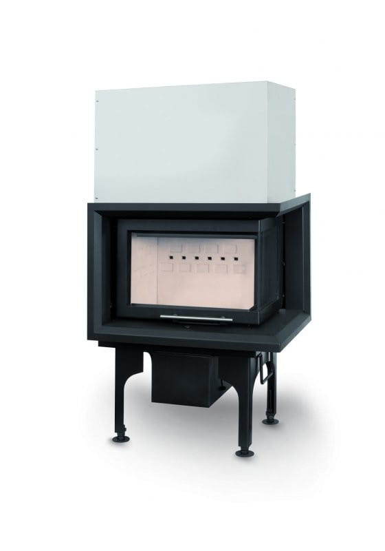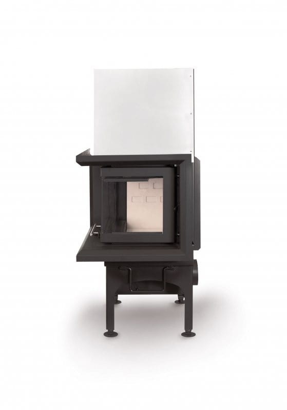 Wkład Kominkowy czeskiej firmy Flamen ALFA 50V R K. Wkład o niezwykłym nowoczesnym wyglądzie wykonany z najwyższej jakości stali charakteryzuje się małymi wymiarami niezbędnymi do zabudowy, przy czym palenisko jest odpowiednio duże i chroni skutecznie przed wypadnięciem palącego się kawałka drewna lub tzw. zadymiania szyby na skutek palących się szczapek. Ze względu na swoje wymiary wkład idealnie sprawdzi się w domach niskoenergetycznych, gdzie wymagana jest niska moc kominka. Wkład kominkowy ALFA może być wyposażony w wymiennik ciepła, który umożliwia rozprowadzanie ciepła również do innych pomieszczeń. Zastosowana najlepsza technologia spalania we wkładach pozwala uzyskać idealny obraz płomienia i stworzyć błogie ciepło, a dzięki jednemu elementowi sterowania obsługa wkładu jest banalnie prosta i wygodna. Przejrzysta narożna prawa szyba odporna jest na bardzo wysokie temperatury i pozwoli na delektowanie się płomieniami ognia w w kominku, dodatkowo wyposażona w system czystej szyby (system FLAMclean). Bezramowe drzwiczki otwierane są do góry – cichy mechanizm wysuwny z linkami – oraz na boki w celu łatwego czyszczenia i obsługi paleniska kominka wyposażone są w ergonomiczny nierdzewny uchwyt. Wkład osiąga sprawność 81%, dzięki temu osiągamy odpowiednią temperaturę zużywając mniej drewna. Zastosowane technologie użyte przy jego konstrukcji pozwolą na długie oddawanie ciepła do wnętrza oraz ekonomiczne spalanie. Wkład kominkowy z wymiennikiem dostarczany jest w wersji dwupłaszczowej.