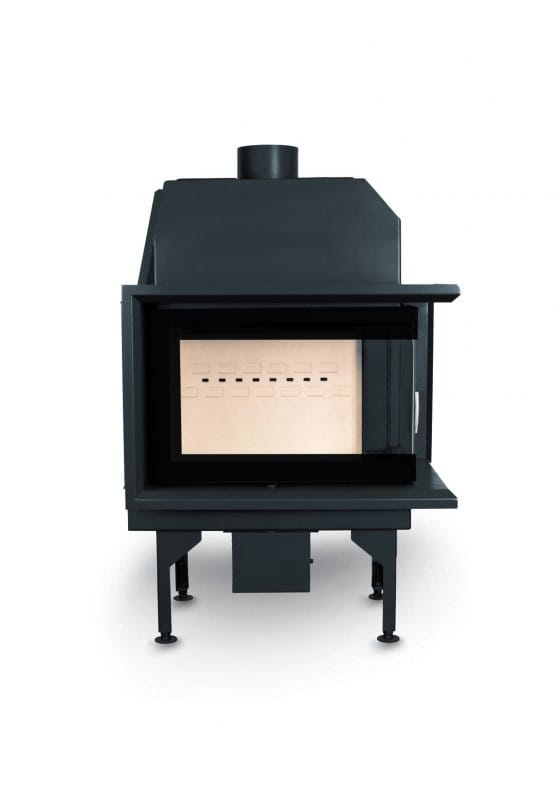 Wkład Kominkowy czeskiej firmy Flamen KAPPA AKU 70H R. Wkład o niezwykłym nowoczesnym wyglądzie wykonany z najwyższej jakości stali przeznaczony zarówno do obudowy konwekcyjnej, jak również akumulacyjnej i promieniującej. Ze względu na swoje wymiary wkład idealnie sprawdzi się w domach niskoenergetycznych, gdzie wymagana jest niska moc kominka. Wkład kominkowy KAPPA może być wyposażony w wymiennik ciepła, który umożliwia rozprowadzanie ciepła również do innych pomieszczeń. Zastosowana najlepsza technologia spalania we wkładach pozwala uzyskać idealny obraz płomienia i stworzyć błogie ciepło, a dzięki jednemu elementowi sterowania obsługa wkładu jest banalnie prosta i wygodna. Przejrzysta podwójna szyba odporna jest na bardzo wysokie temperatury i pozwoli na delektowanie się płomieniami ognia w w kominku, dodatkowo wyposażona w system czystej szyby (system FLAMclean). Drzwiczki otwierane są do boku wyposażone są w ergonomiczny nierdzewny uchwyt. Wkład osiąga sprawność 85%, dzięki temu osiągamy odpowiednią temperaturę zużywając mniej drewna. Zastosowane technologie użyte przy jego konstrukcji pozwolą na długie oddawanie ciepła do wnętrza oraz ekonomiczne spalanie. Wkład kominkowy z wymiennikiem dostarczany jest w wersji dwupłaszczowej.