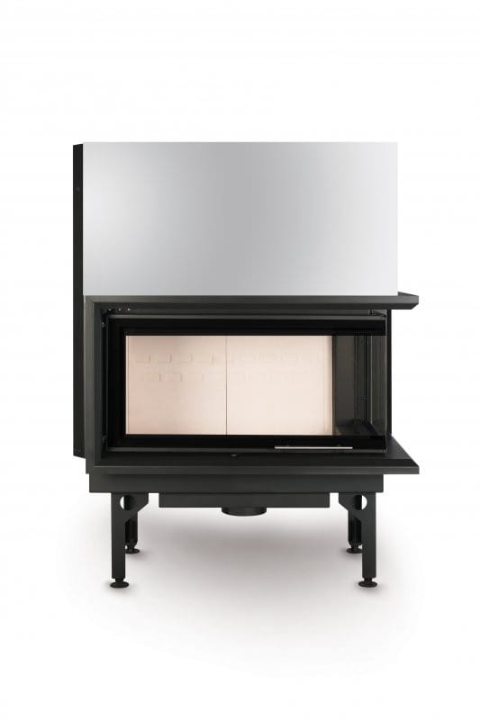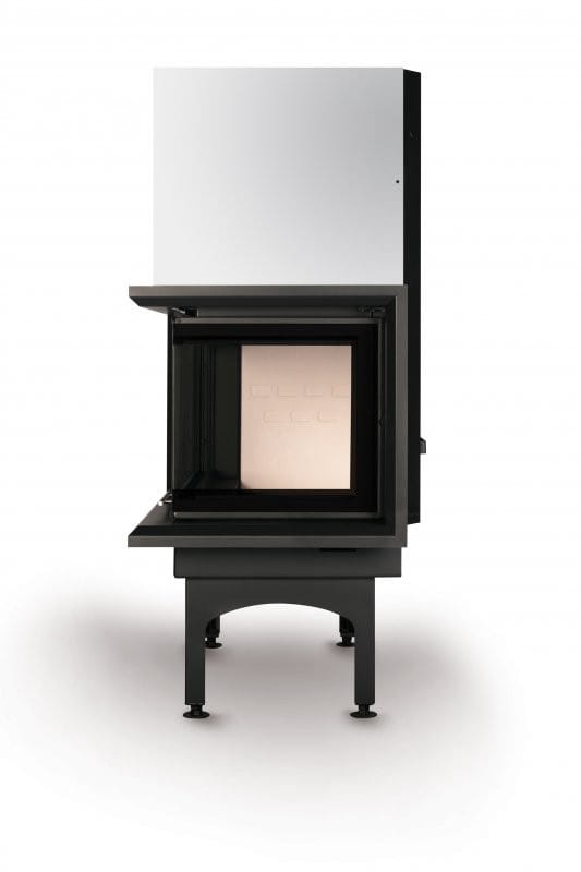Wkład Kominkowy czeskiej firmy Flamen OMEGA 90V R. Wkład o niezwykłym nowoczesnym wyglądzie wykonany z najwyższej jakości stali. Ze względu na swoje wymiary kominek pasuje przede wszystkim do większych wnętrz, w których stanie są elementem dominującym. Charakteryzuje się doskonałymi parametrami technicznymi, takimi jak wysoka sprawność spalania i optymalna moc. Wkład kominkowy OMEGA może być wyposażony w wymiennik ciepła, który umożliwia rozprowadzanie ciepła również do innych pomieszczeń. Zastosowana najlepsza technologia spalania we wkładach pozwala uzyskać idealny obraz płomienia i stworzyć błogie ciepło, a dzięki jednemu elementowi sterowania obsługa wkładu jest banalnie prosta i wygodna. Przejrzysta narożna prawa szyba z czarnym nadrukiem odporna jest na bardzo wysokie temperatury i pozwoli na delektowanie się płomieniami ognia w w kominku, dodatkowo wyposażona w system czystej szyby (system FLAMclean). Bezramowe drzwiczki otwierane są do góry – cichy mechanizm wysuwny z linkami – oraz na boki w celu łatwego czyszczenia i obsługi paleniska kominka. wyposażone są w ergonomiczny nierdzewny uchwyt. Wkład osiąga sprawność 82%, dzięki temu osiągamy odpowiednią temperaturę zużywając mniej drewna. Zastosowane technologie użyte przy jego konstrukcji pozwolą na długie oddawanie ciepła do wnętrza oraz ekonomiczne spalanie.