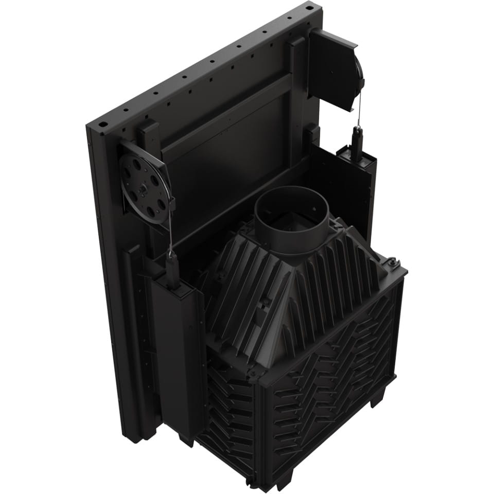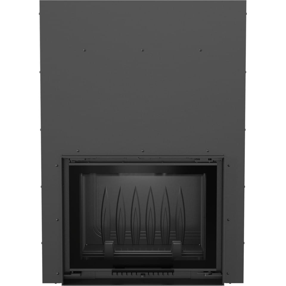 Kratki ZUZIA 16 gilotyna. Żeliwny wkład kominkowy wykonany z najwyższej jakości żeliwa o niezwykłym klasycznym wyglądzie doda w każdym salonie niesamowity efekt wystroju. Zamontowana prosta żaroodporna wytrzymująca tempereturę 800°C dekoracyjna szyba typu glass z systemem czystej szyby (poprzez nawiew powietrza na szybę) pozwoli na delektowanie się płomieniami ognia w kominku. Zamontowany podwójny system otwierania drzwi Gilotyna do góry ułatwiaja wkładanie drewna, a do boku ułatwia czyszczenie szyby. Dzięki mocy nominalnej 16 kW szybko i sprawnie ogrzeje wnętrze, a zaawansowane technologie użyte przy jego konstrukcji pozwolą na długie oddawanie ciepła do wnętrza. We wkładzie zastosowano: wbudownay szyber dzięki któremu poprzez manualną regulację ciągu komina zwiększamy wydajność pracy wkładu, ręczną kontrolę nad procesem spalania poprzez przesuwkę popielnika, deflektor dzięki któremu wydłużona jest droga spalin i dopalane są cząstki opału, wysoki czopuch, który ma za zadanie zwiększyć powierzchnię wymiany ciepła między wkładem a otoczeniem, ruchomy ruszt, popielnik oraz ozdobny płotek, który ma za zadanie również zabezpieczyć przed wypadaniem drewna.