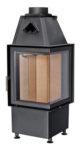 Wkład Kominkowy Corner 450/500 BS/450 Lewy Narożny wkład o niezwykłym wyglądzie wykonany z najwyższej jakości materiałów malowany ekologiczną farbą Senotherm® UHT HYDRO w kolorze czarny metalik, dzięki czemu podczas palenia nie wydziela się nieprzyjemny zapach, a zastosowana farba na bazie wody podczas wypalania wydziela tylko parę wodną. Solidnie wykonana konstrukcja wkładu oraz zwiękoszona masa wkładu nawet do 69% od innych wkładów na rynku zapewnia trwałość na lata. Szyba łączona bez szprosa odporna na temperatury do 750°C pozwali na delektowanie się płomieniami ognia w piecyku, dodatkowo wyposażona w system czystej szyby poprzez nawiew z czterech stron (powietrze dostaje się na szybę specjalnymi kanałami ze wszystkich stron co zapewnia świetne rezultaty utrzymania szyby w czystości). Drzwiczki otwierane do boku wyposażone są w nierdzewne listwy zapewniając poza estetyką zabezpieczenie uszczelek przed twardnięciem. Palenisko ma ponad 7,5 cm głębokości, co czyni je bardzo praktyczne, ponieważ nie wysypuje się z niego popiół podczas dokładania drewna oraz nie wymaga tak częstego czyszczenia jak w płytkich paleniskach. Zastosowane technologie użyte przy jego konstrukcji pozwolą na długie oddawanie ciepła do wnętrza oraz ekonomiczne spalanie.