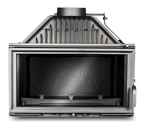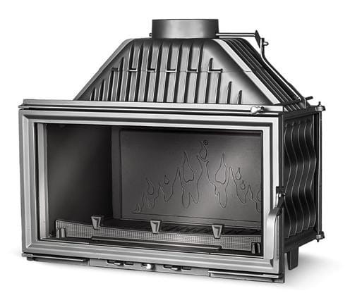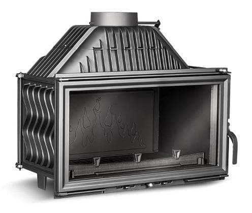 Wkład Kominkowy Grand W15 Wkład o niezwykłym wyglądzie w wykonany z najwyższej jakości żeliwa ogrzeje średniej i większej wielkości pomieszczenie. Grubość ścianek naszych wkładów to 10-15 mm (konkurencja ma 7-8 mm) dzięki czemu wkład jest bezpieczniejszy i wydłuża pracę urządzenia. Elementy są skręcane, a nie spawane, co dodatkowo zapobiega naprężeniom wewnątrz konstrukcji. Każdy wkład wyposażony jest w demontowalną podwójną tylną ściankę co zapewnia przejęcie największego obciążenia cieplnego na element, który w prosty sposób można wymienić (jest on luźno osadzony), nie naruszając konstrukcji wkładu i obudowy. Przejrzysta szeroka prosta szyba odporna na temperatury do 750°C pozwali na delektowanie się płomieniami ognia w piecyku, dodatkowo wyposażona w system czystej szyby. Drzwiczki otwierane do boku wyposażone są w ergonomiczny uchwyt. Zastosowane technologie użyte przy jego konstrukcji pozwolą na długie oddawanie ciepła do wnętrza oraz ekonomiczne spalanie.