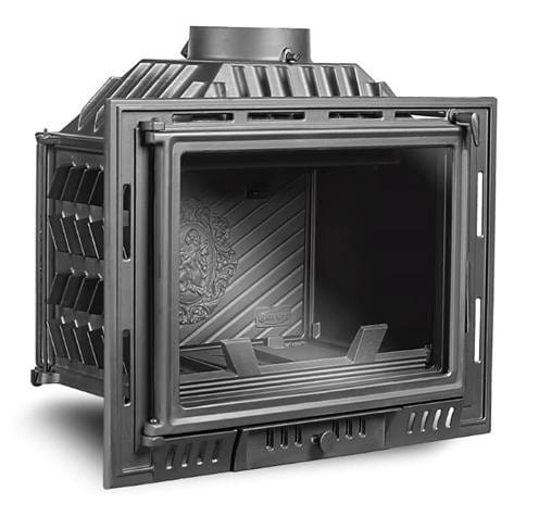 Wkład Kominkowy Pionier W6 Wkład o niezwykłym wyglądzie wykonany z najwyższej jakości żeliwa. Grubość ścianek naszych wkładów to 10-15 mm (konkurencja ma 7-8 mm) dzięki czemu wkład jest bezpieczniejszy i wydłuża pracę urządzenia. Elementy są skręcane, a nie spawane, co dodatkowo zapobiega naprężeniom wewnątrz konstrukcji. Każdy wkład wyposażony jest w demontowalną podwójną tylną ściankę co zapewnia przejęcie największego obciążenia cieplnego na element, który w prosty sposób można wymienić (jest on luźno osadzony), nie naruszając konstrukcji wkładu i obudowy. Przejrzysta prosta szyba odporna na temperatury do 750°C pozwali na delektowanie się płomieniami ognia w piecyku, dodatkowo wyposażona w system czystej szyby. Drzwiczki otwierane do boku wyposażone są w ergonomiczny uchwyt. Zastosowane technologie użyte przy jego konstrukcji pozwolą na długie oddawanie ciepła do wnętrza oraz ekonomiczne spalanie.