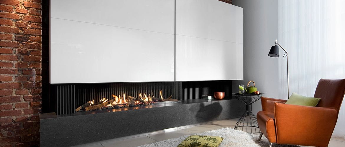 Gazowy wkład kominkowy Kalfire G165 / 37C. Wyrózniają go spośród konkurencji zastosowane nowatorskie technologie oraz wysoka jakość wykonania, elegancki design, a także pełna wizja ognia w kominku do złudzenia przypominająca ogień w klasycznym kominku. Wszystkie gazowe wkłady kominkowe są oferowane standardowo z wnętrzem minimalistycznym z powierzchnią płaską.